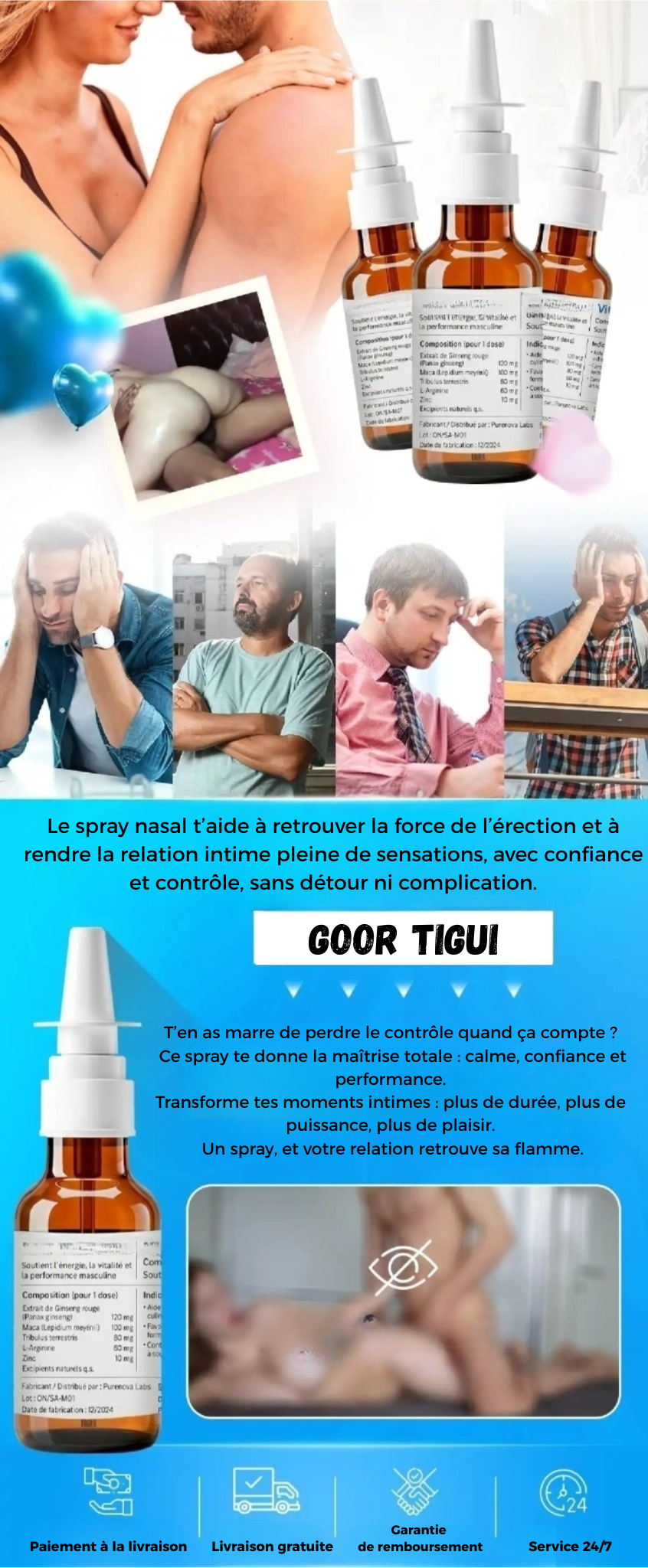 Retrouvez l’intensité des débuts grâce à une solution simple, rapide et discrète. GOOR Tigui vous aide à raviver le désir, améliorer la connexion physique et renforcer la complicité émotionnelle avec votre partenaire. Un geste suffit pour redonner vie à votre passion et renforcer votre couple au quotidien.